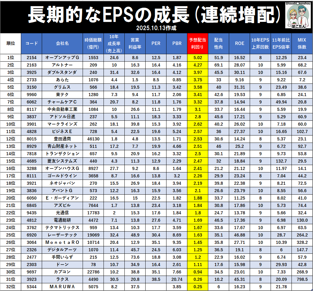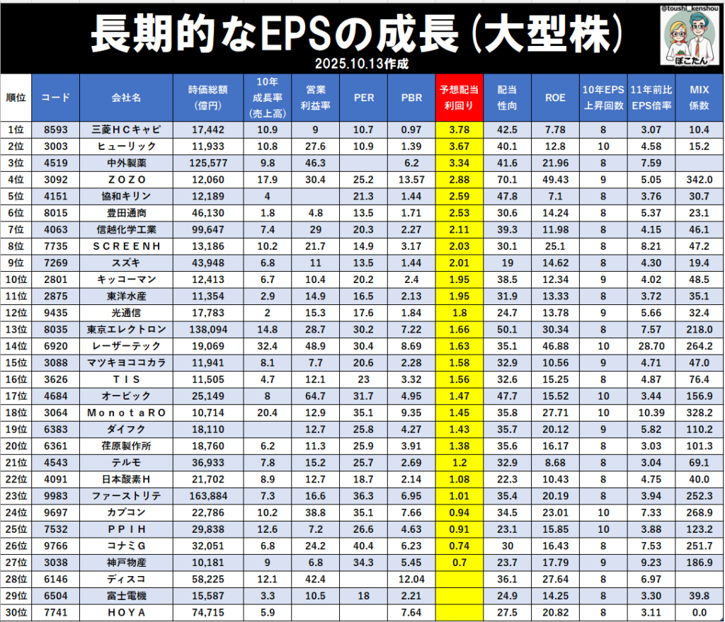 ※大型株の方が成長が鈍化する傾向になるので大型株ではEPS倍率3倍、連続増配株では5倍としています。